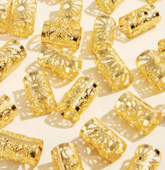 Pack of 10 Pieces Gold Textured Metal Hair Beads