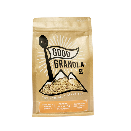 Product Details Escape to the tropics at breakfast? Yes please! Our Good Granola Company Papaya, Coconut & Pineapple Granola brings sunshine to your mornings with every crunchy bite. Juicy papaya chunks, golden pineapple pieces, and lightly toasted coconut flakes are blended with rolled oats and baked for the perfect balance...