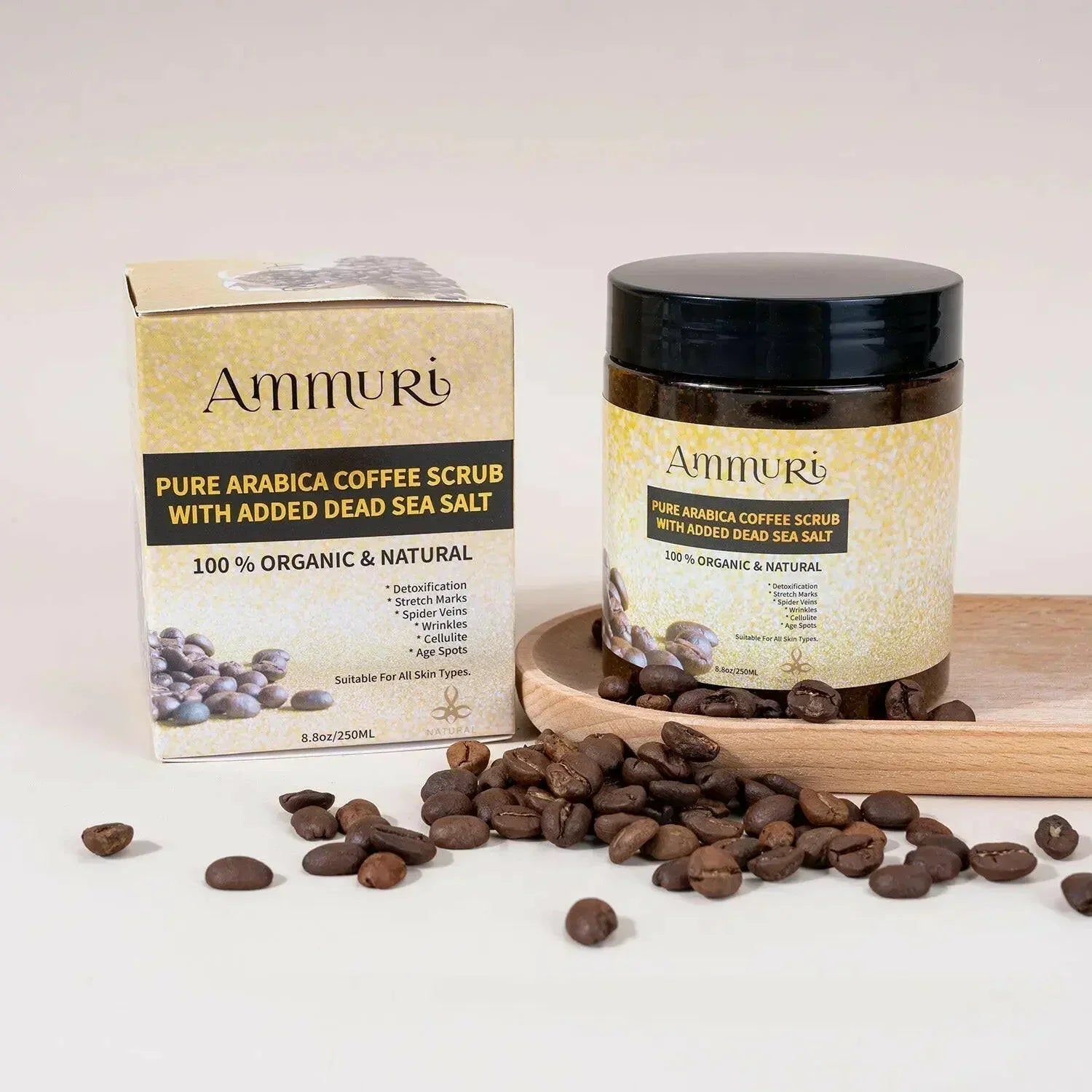 Discover the ultimate skincare luxury with Ammuri Skincare's Pure Arabica Coffee Scrub with Added Dead Sea Salt. This organic coffee scrub for skin promises a rejuvenating experience like no other. Crafted with 100% organic ingredients, it naturally revitalizes your skin.