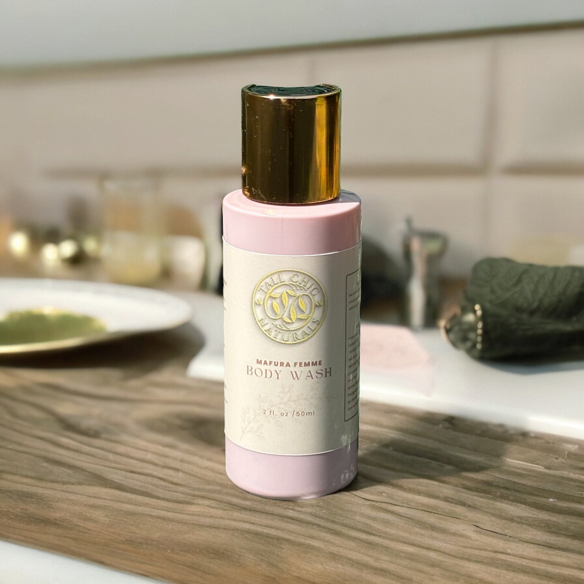 Indulge in Luxurious Skin Nourishment with Our Creamy Body Wash. Experience the epitome of skincare luxury with our creamy body wash, meticulously crafted not only to cleanse but also to deeply nourish your skin. Enriched with the exceptional properties of Mafura Butter, boasting a blend of palmitic, stearic, oleic, and linoleic fatty acids, this body wash ensures your skin remains impeccably moisturized. Immerse yourself in a symphony of captivating scents featuring Rose, Lavender, and Vanilla, exuding an aura of feminine charm.