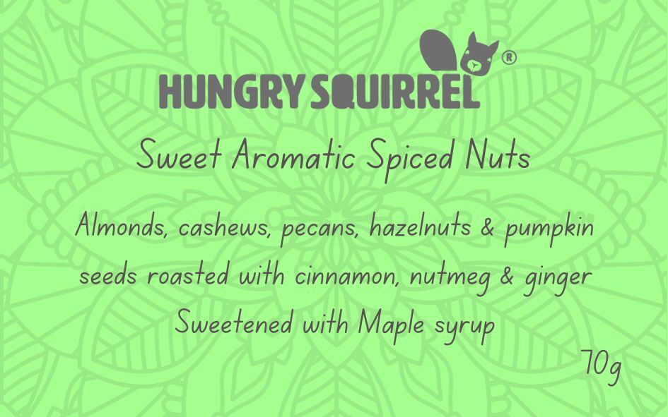 A gently roasted blend of almonds, cashews, hazelnuts, pecans and pumpkin seeds, spiced with cinnamon, nutmeg, ginger and maple syrup for warming, balanced sweetness in every bite.